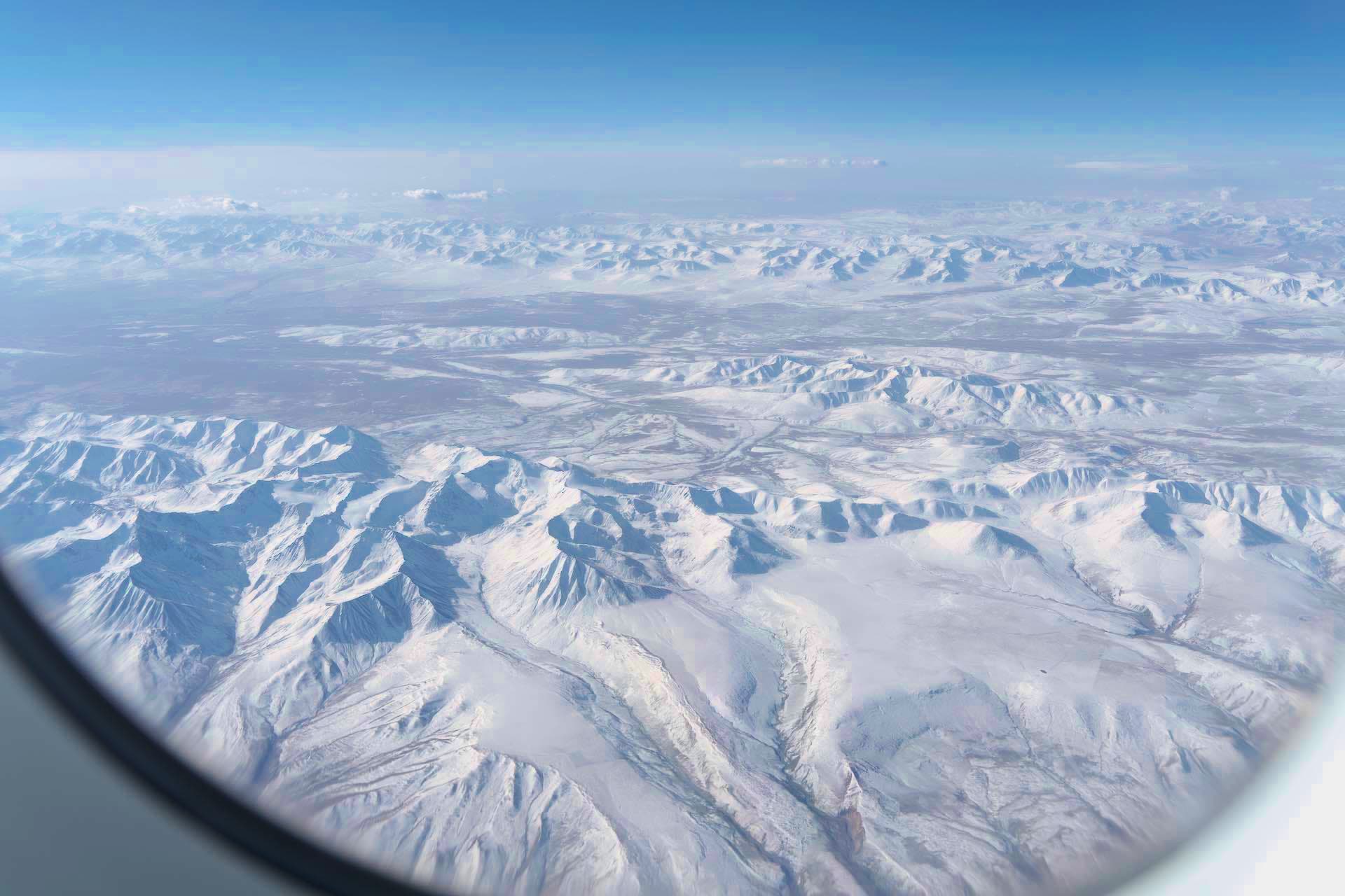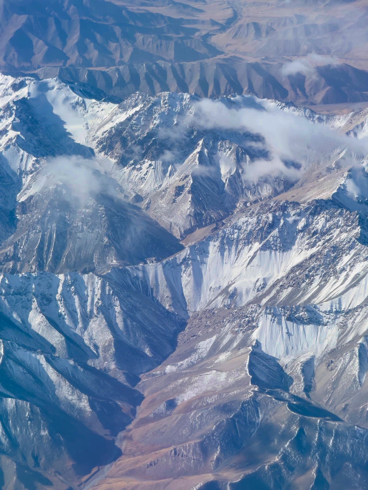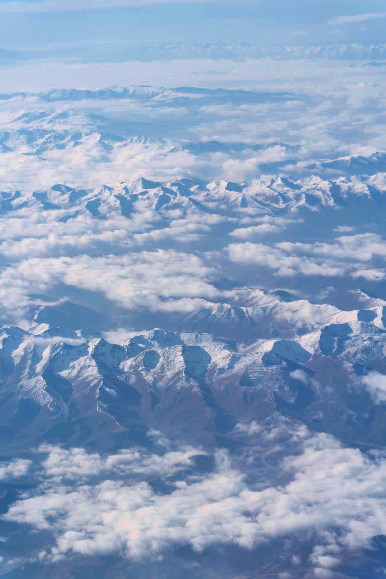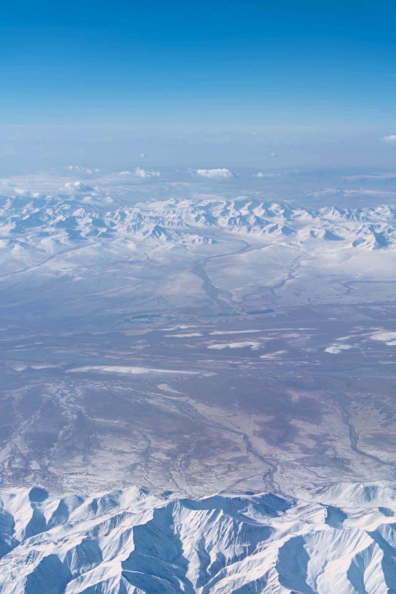 飞乌鲁木齐全程约 5 小时,今天全程途径的地方似乎都是晴天或多云,能见度很好,看地貌非常清晰。