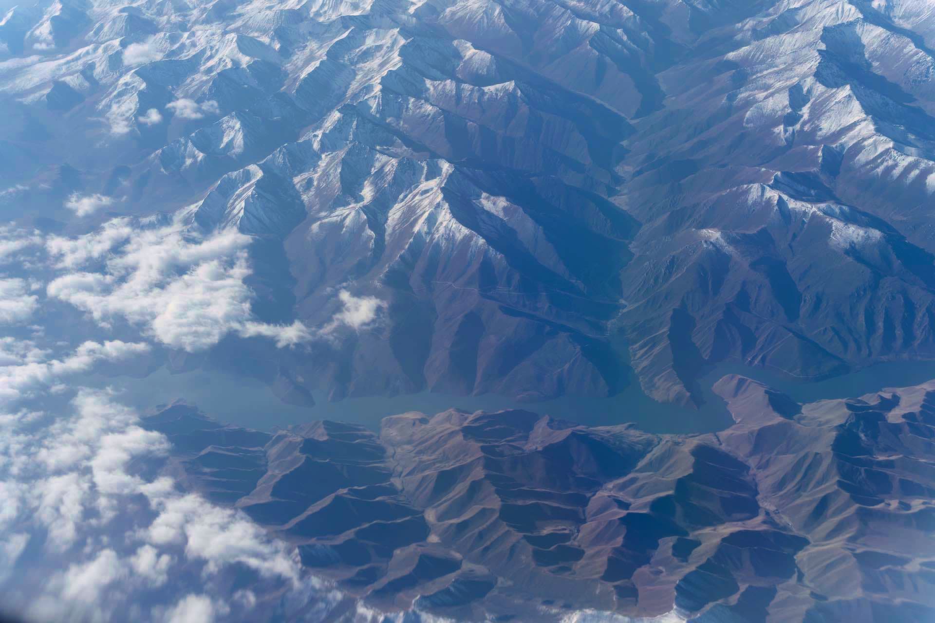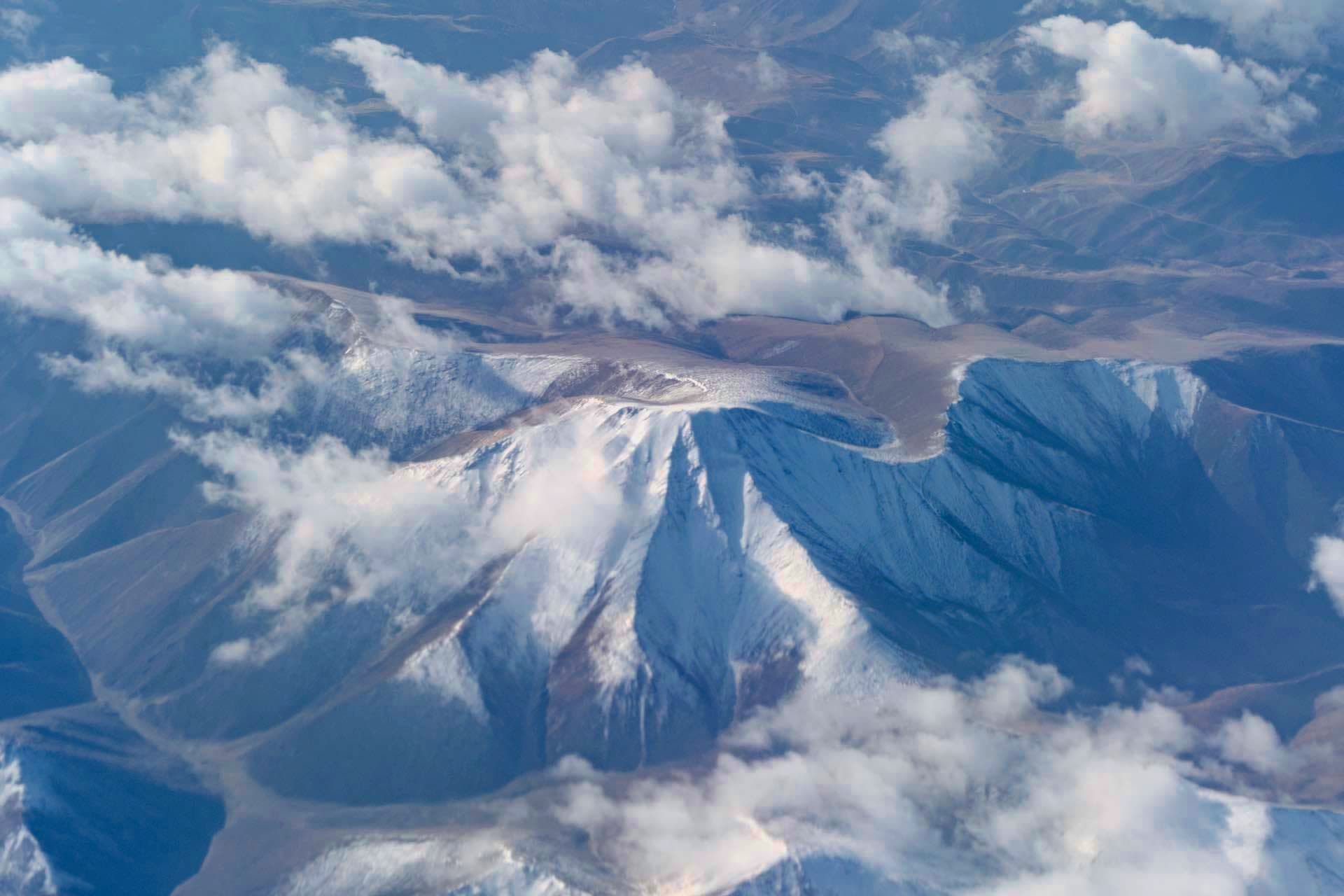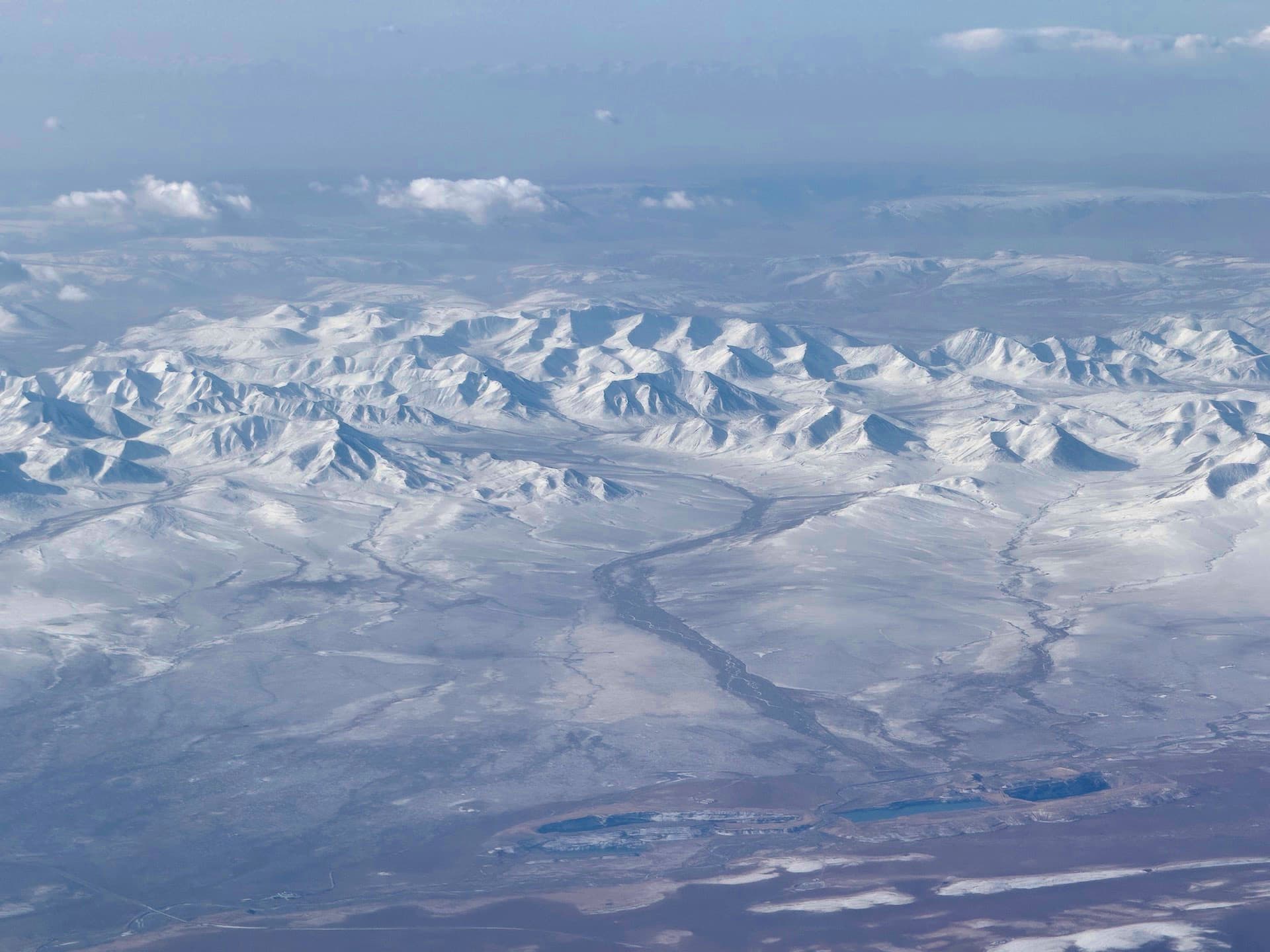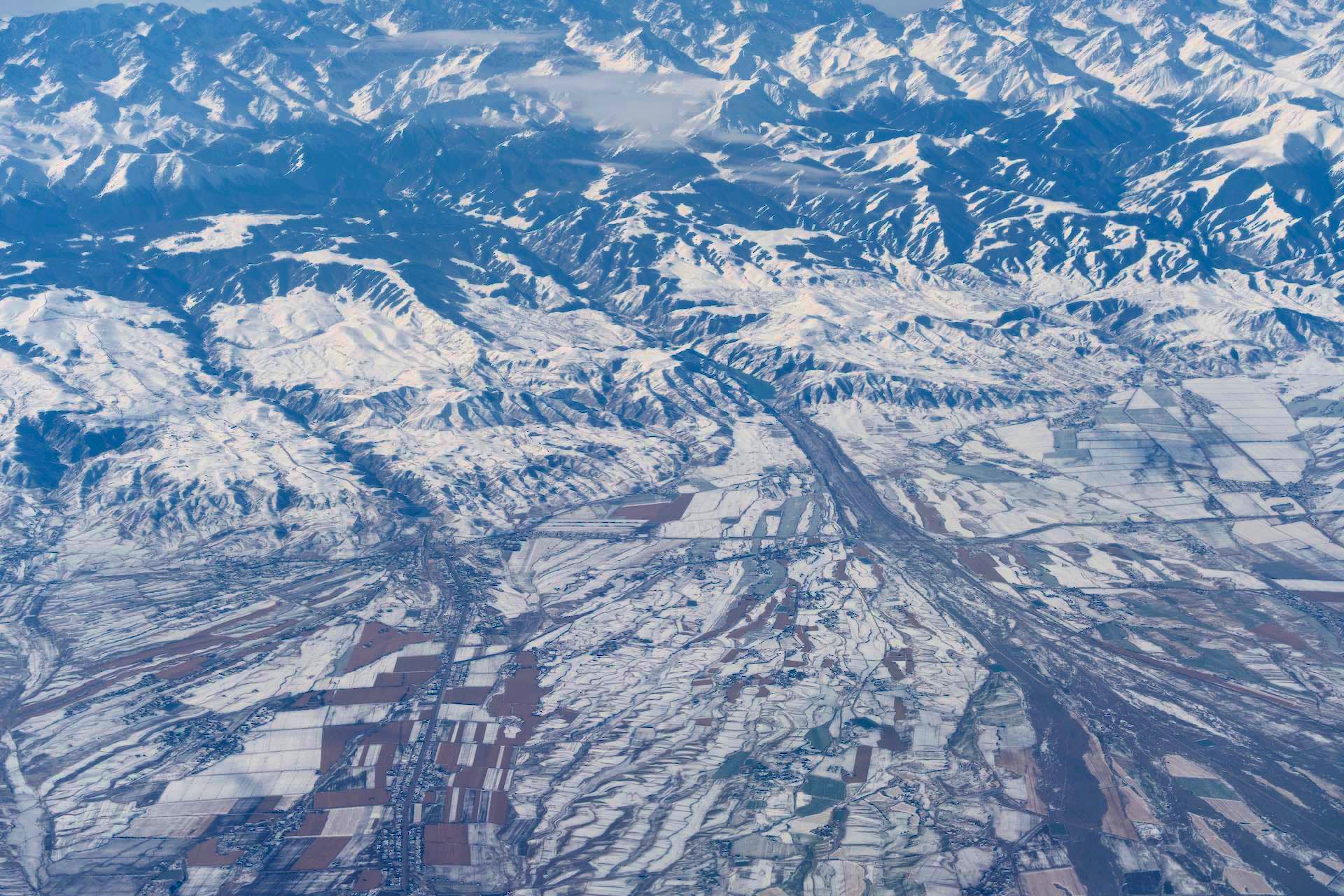 飞乌鲁木齐全程约 5 小时,今天全程途径的地方似乎都是晴天或多云,能见度很好,看地貌非常清晰。