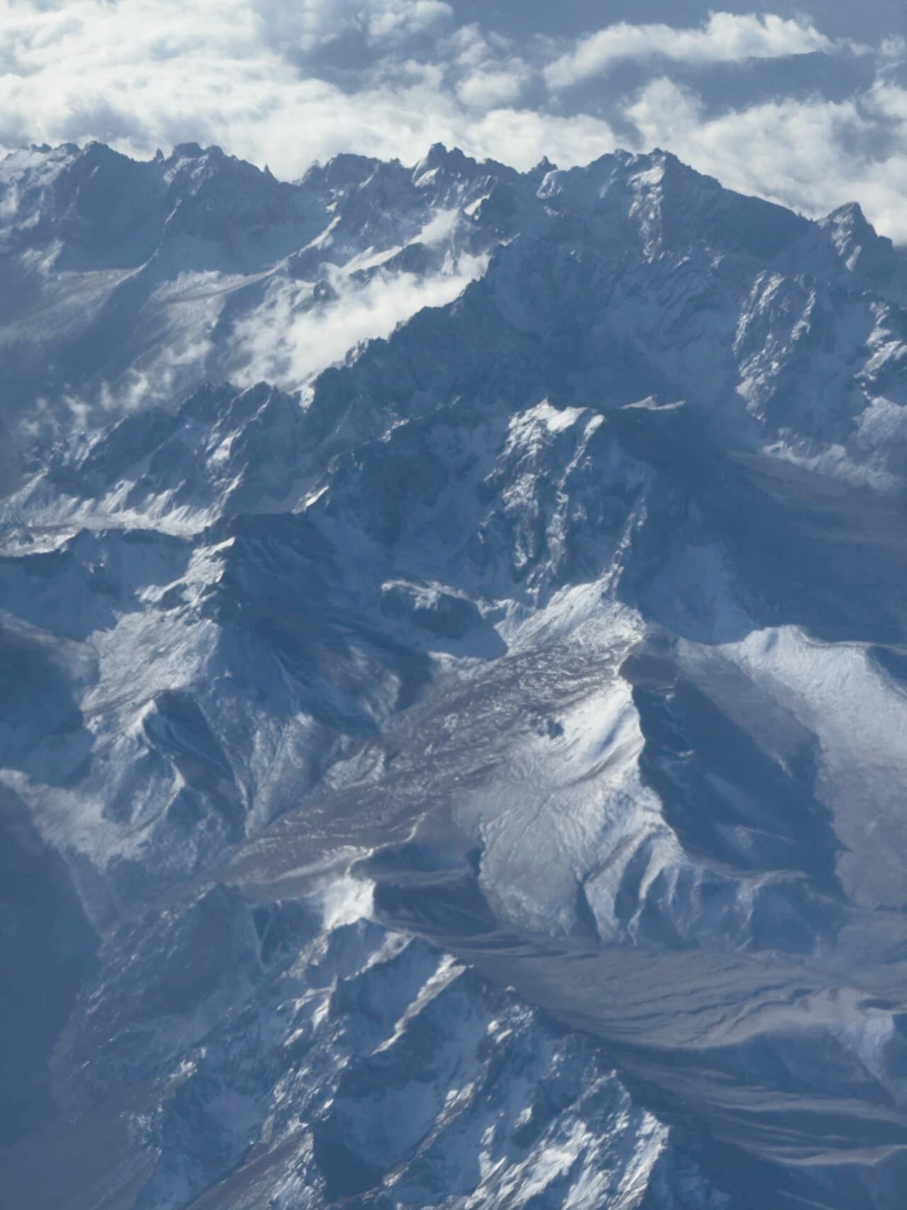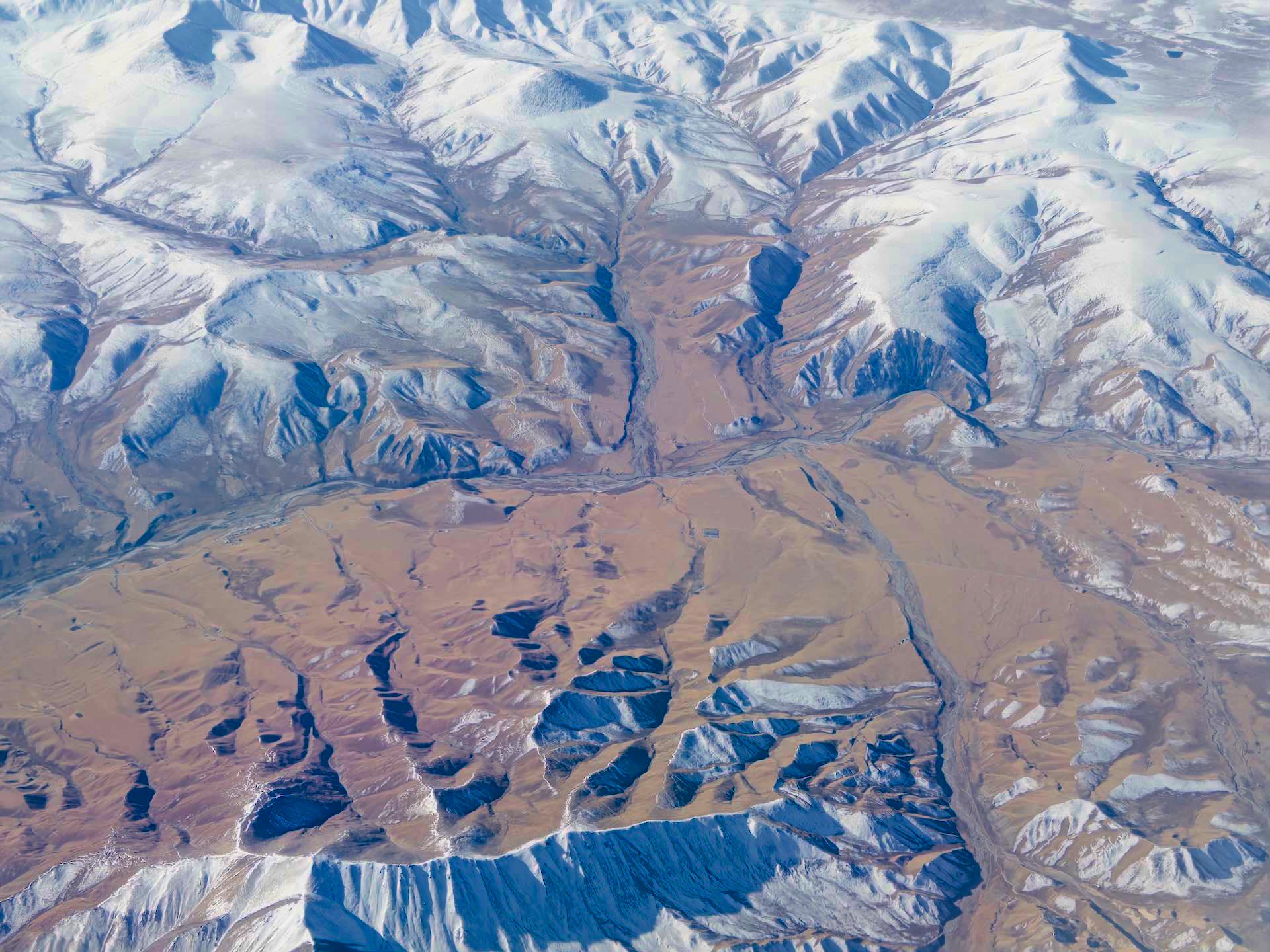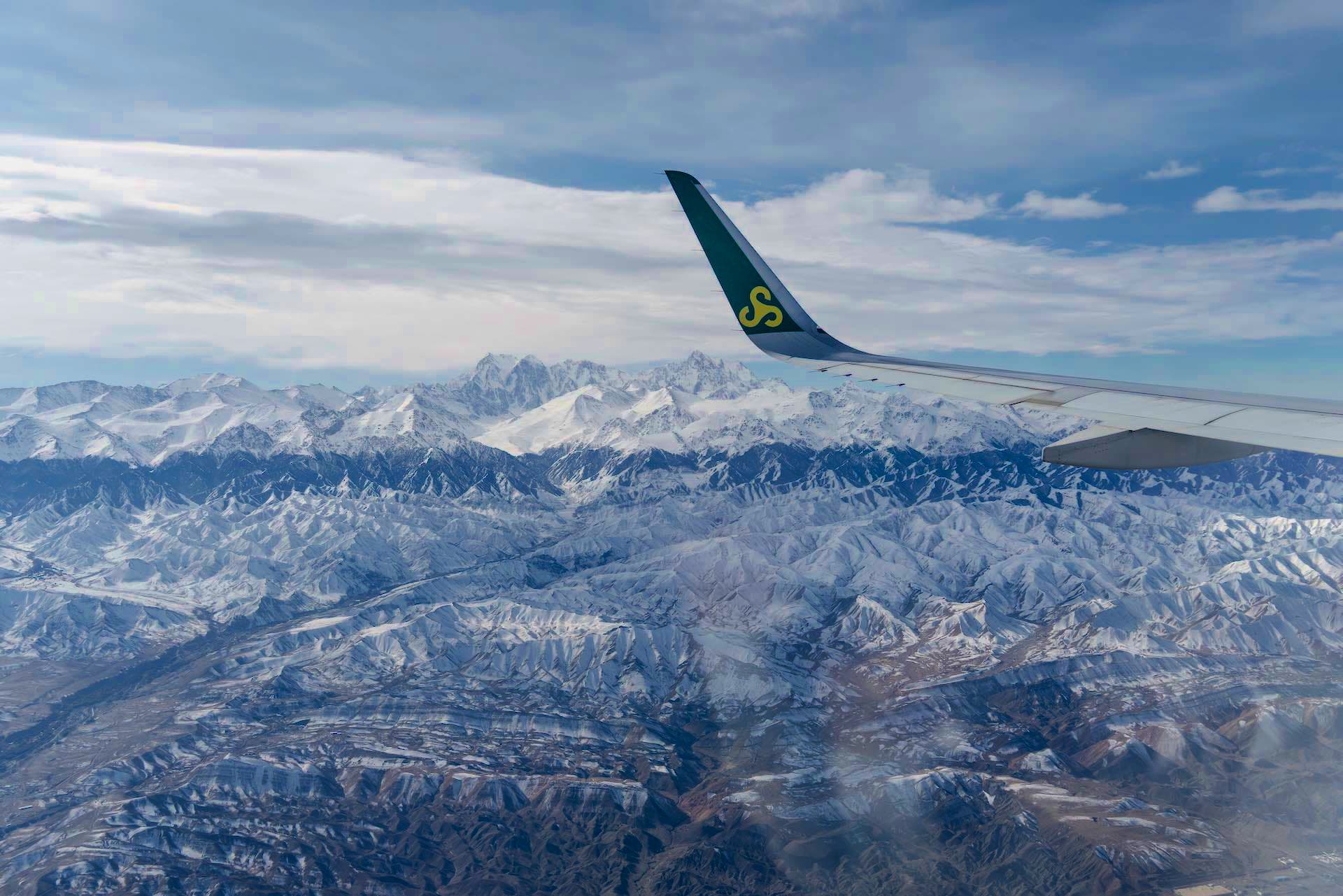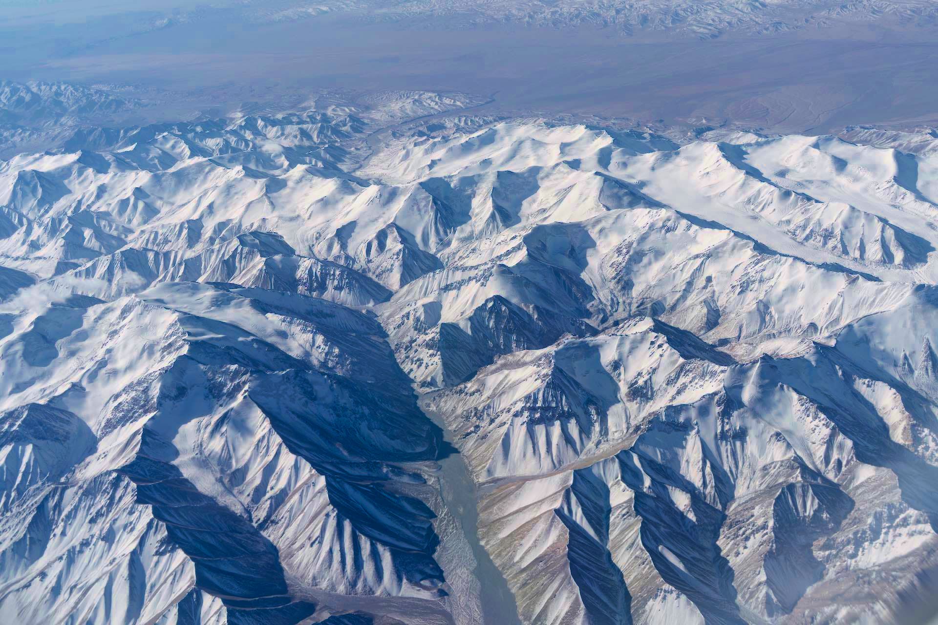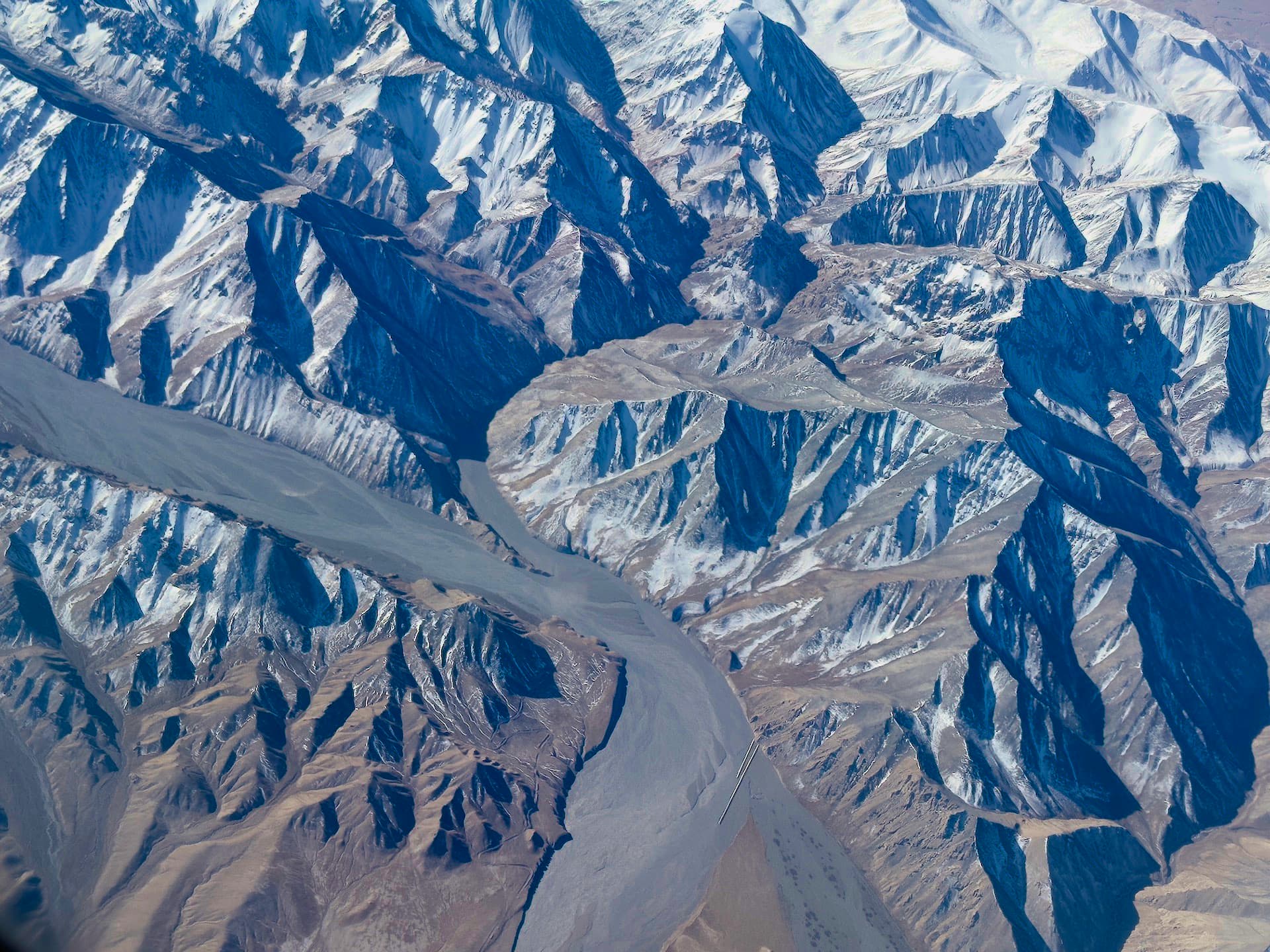 飞乌鲁木齐全程约 5 小时,今天全程途径的地方似乎都是晴天或多云,能见度很好,看地貌非常清晰。