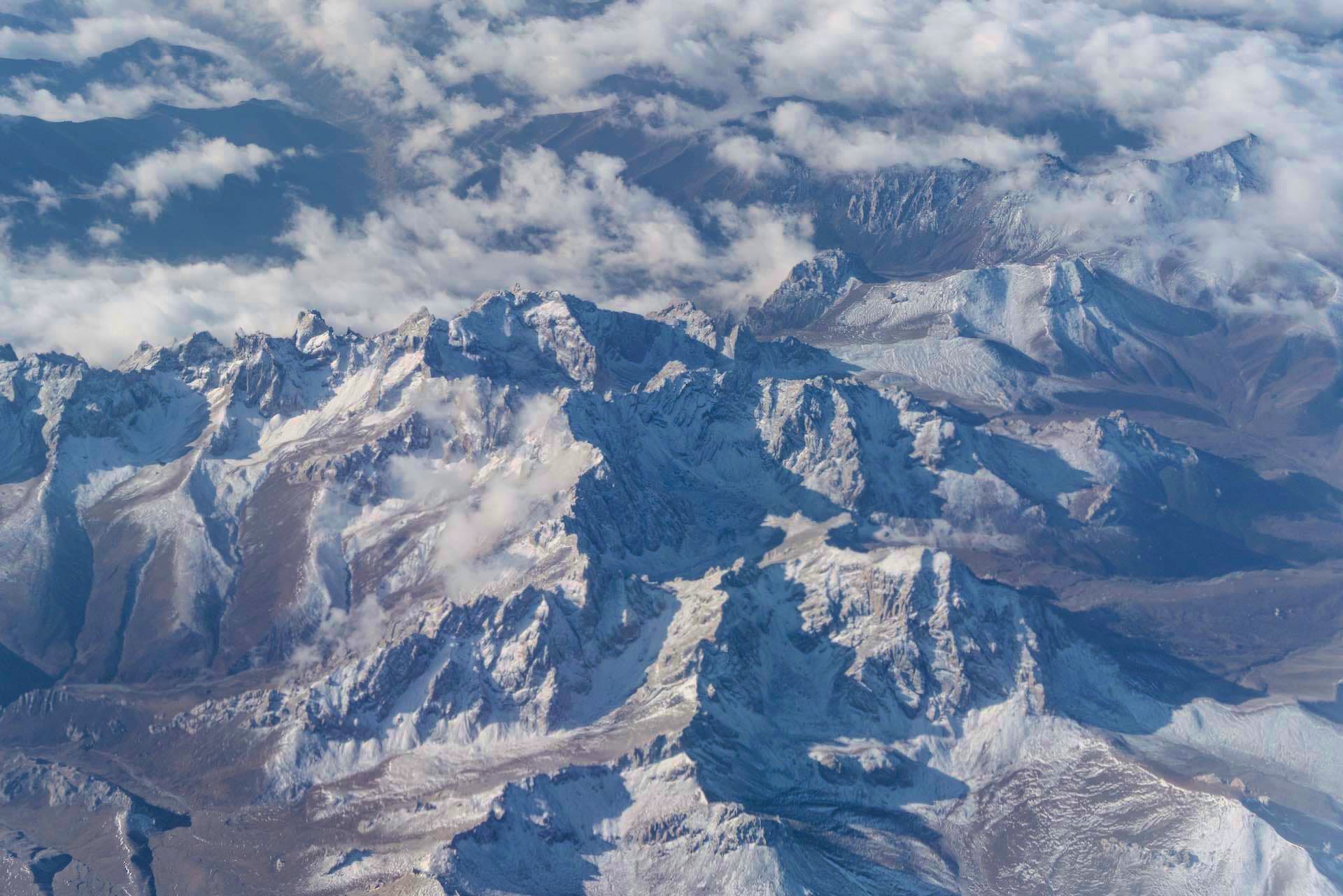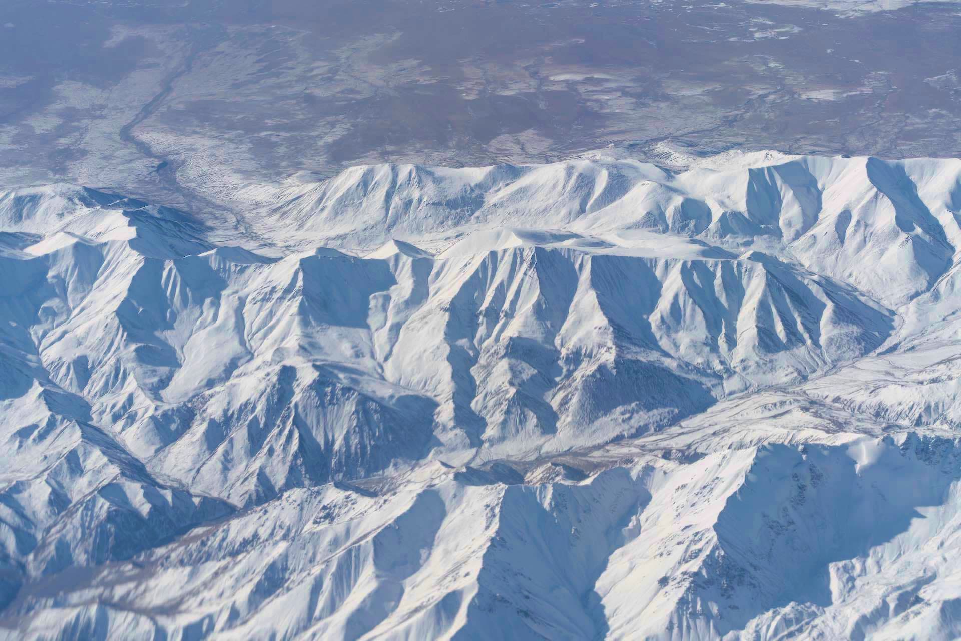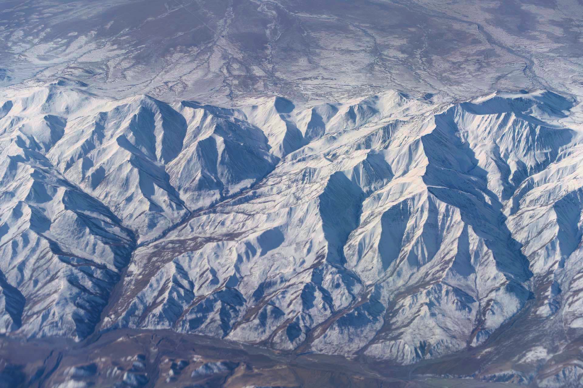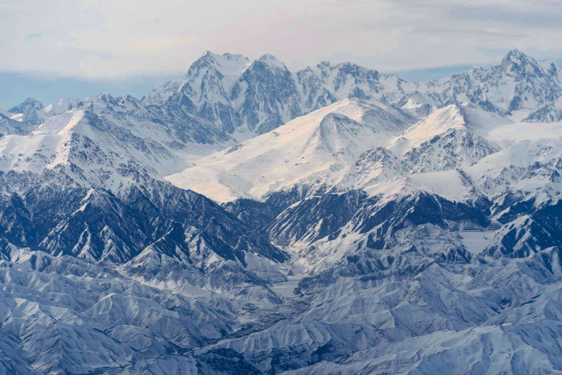 飞乌鲁木齐全程约 5 小时,今天全程途径的地方似乎都是晴天或多云,能见度很好,看地貌非常清晰。