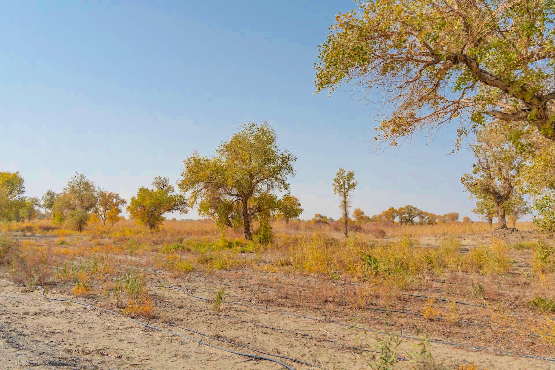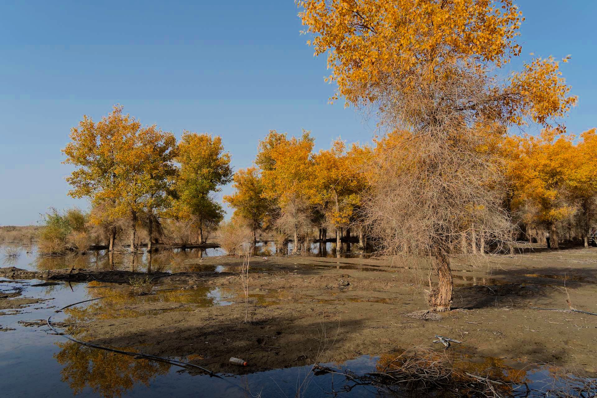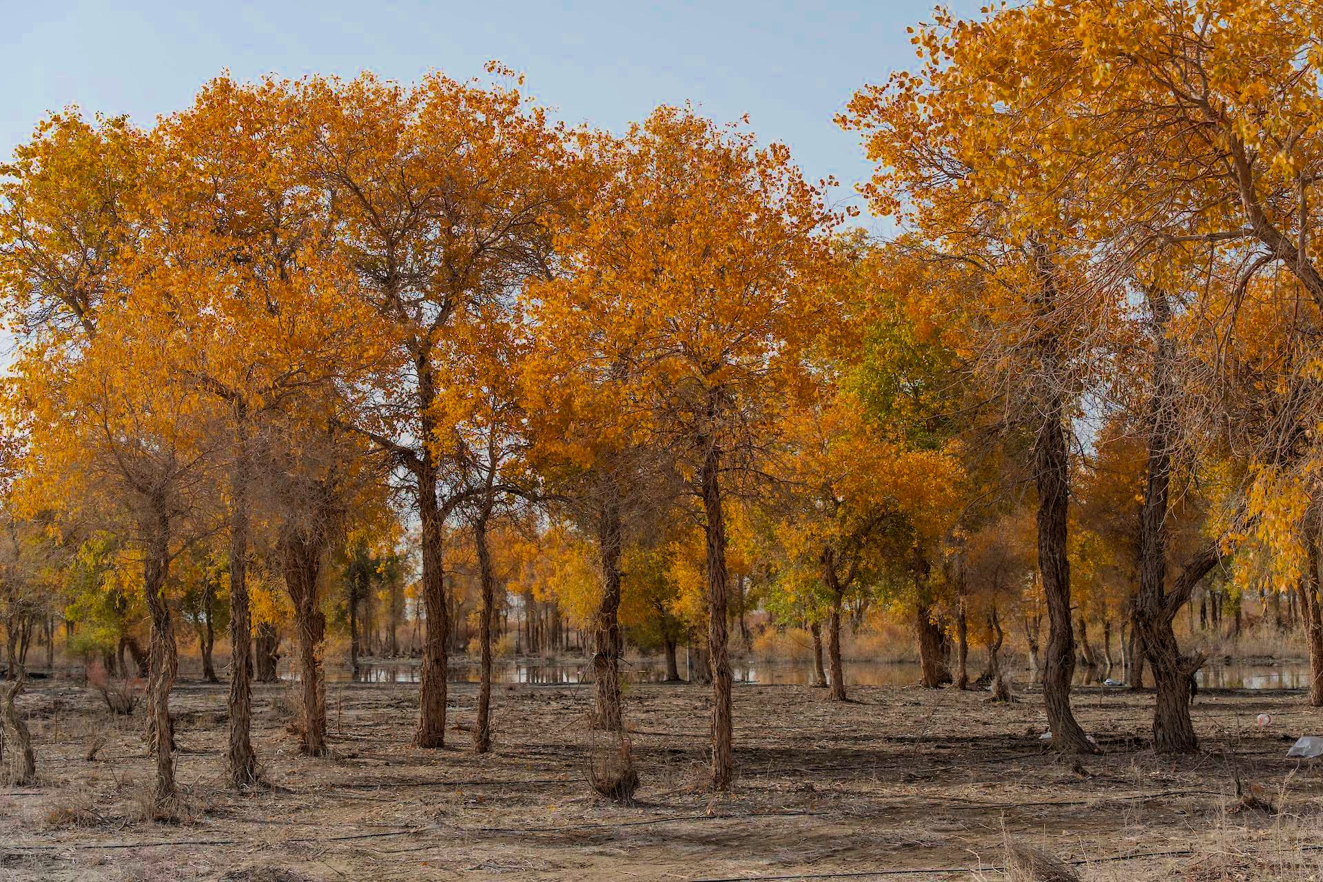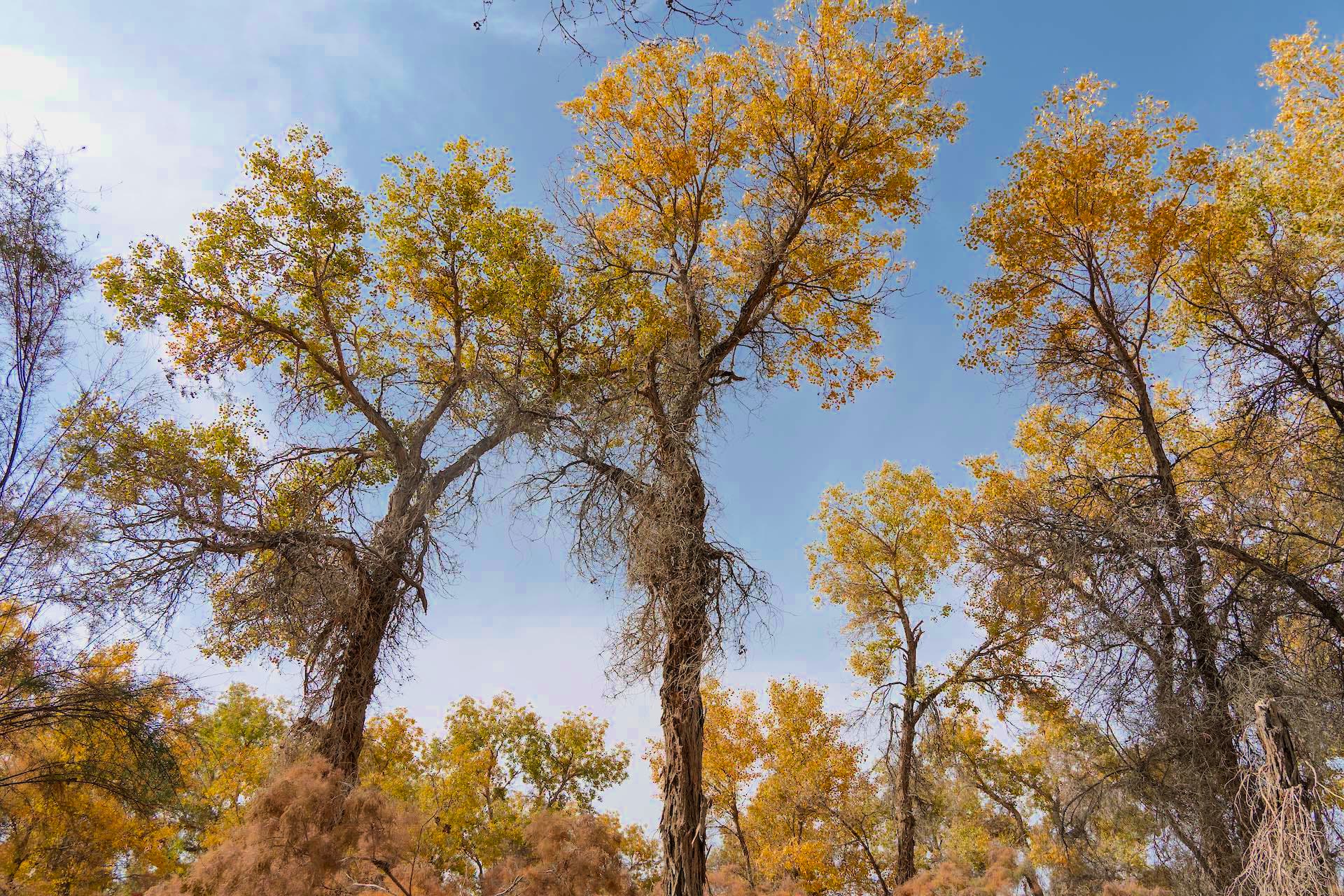 继续开还看到很多棉花田,司机大哥在路边放我们下来玩玩,这一片胡杨林已经开始转黄了。