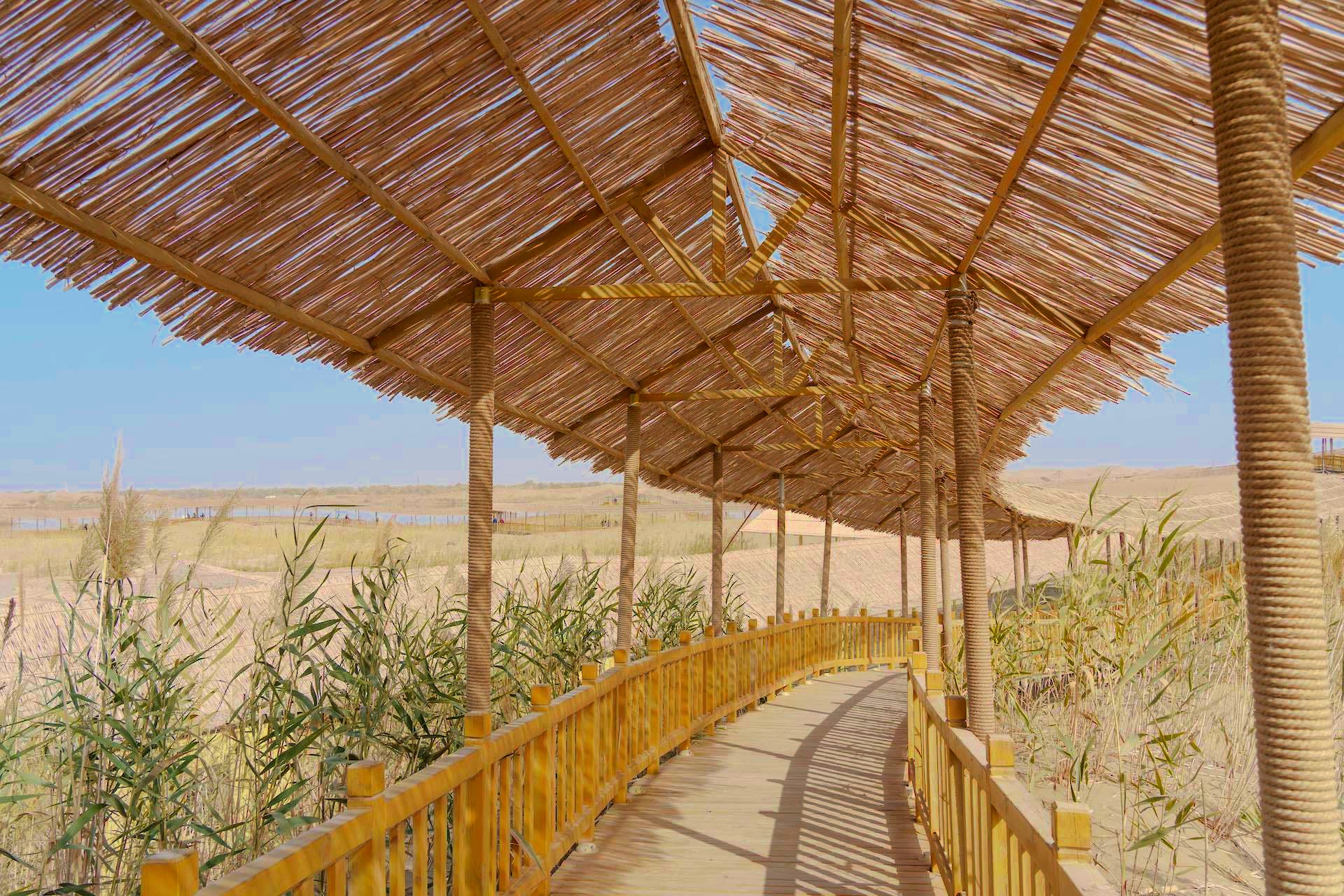 继续乘坐区间车前往 神女湖,沿途可以欣赏茫茫沙漠的景色。