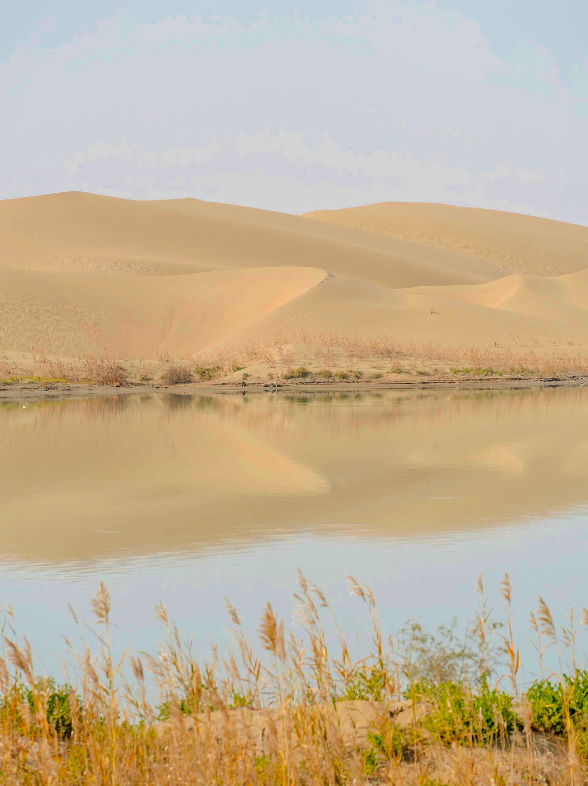 戈壁滩、沙漠,是大部份区域的面貌。好在有天山融水形成了塔里木河,滋养着这片土地。