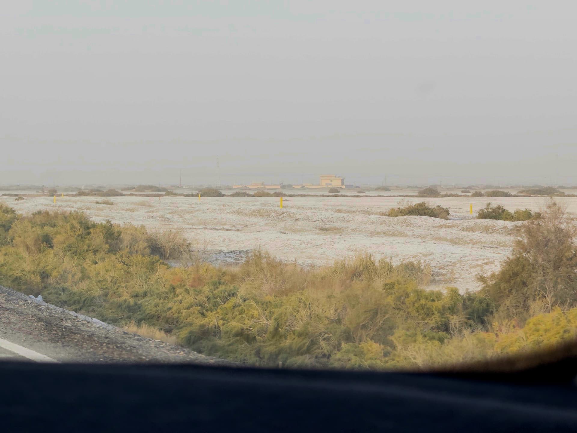 沿路两边可以看到碱化严重的土地,表面像盖着一层白雪。