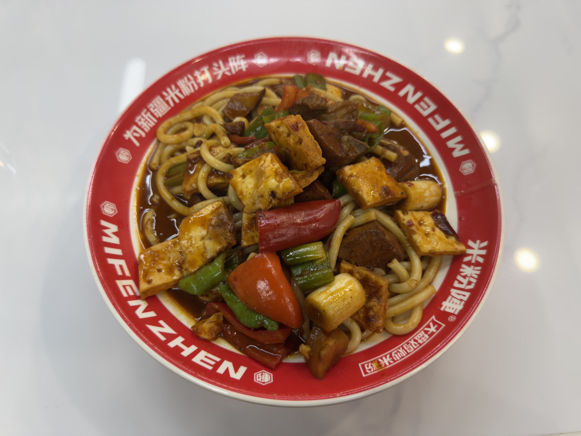 在万达吃了一个大盘鸡炒米粉,25 元,分量很大,味道也好吃。