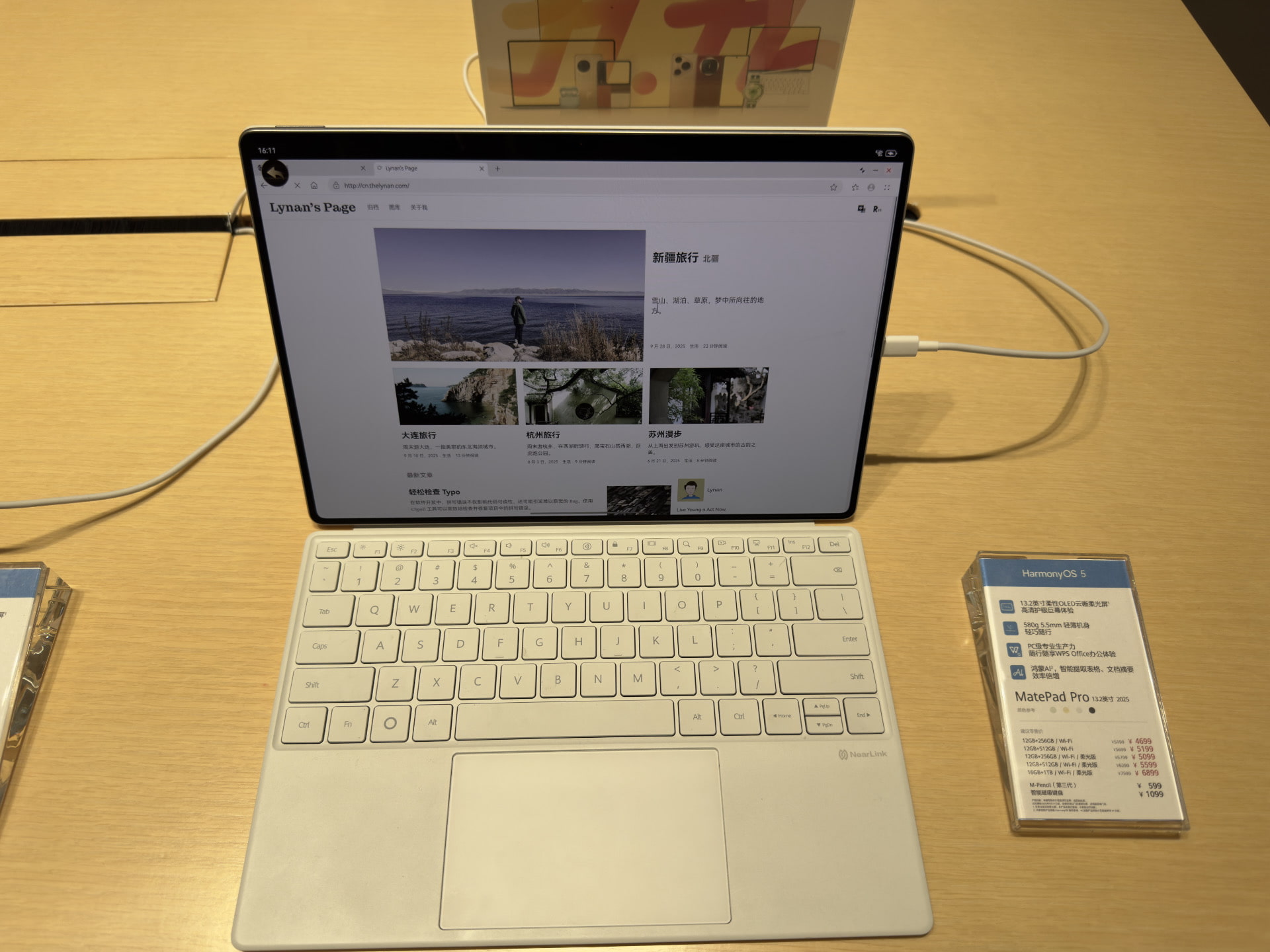 哈哈,在华为体验店用华为平板电脑查看我的博客网站。